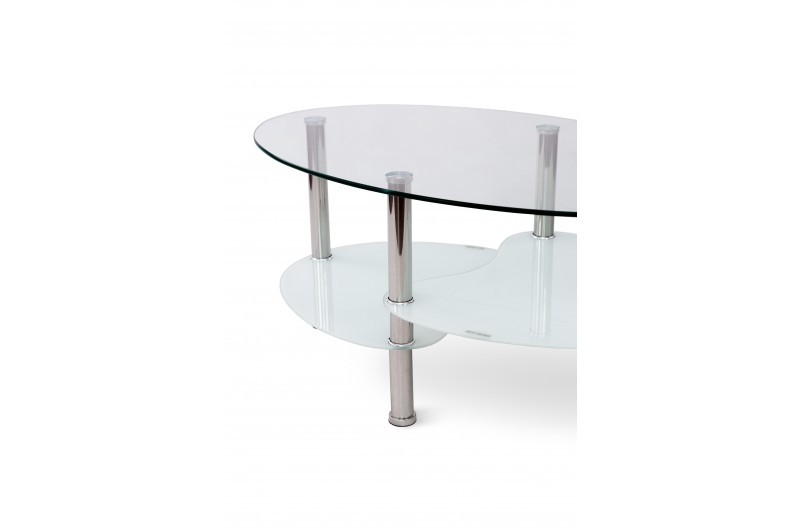 Стіл журнальний Ненсі з колекції "Grace" виготовлений з триплекс скла, що складається з білого (товщина 5 мм) та прозорого (товщина 8 мм), ніжки метал хром.